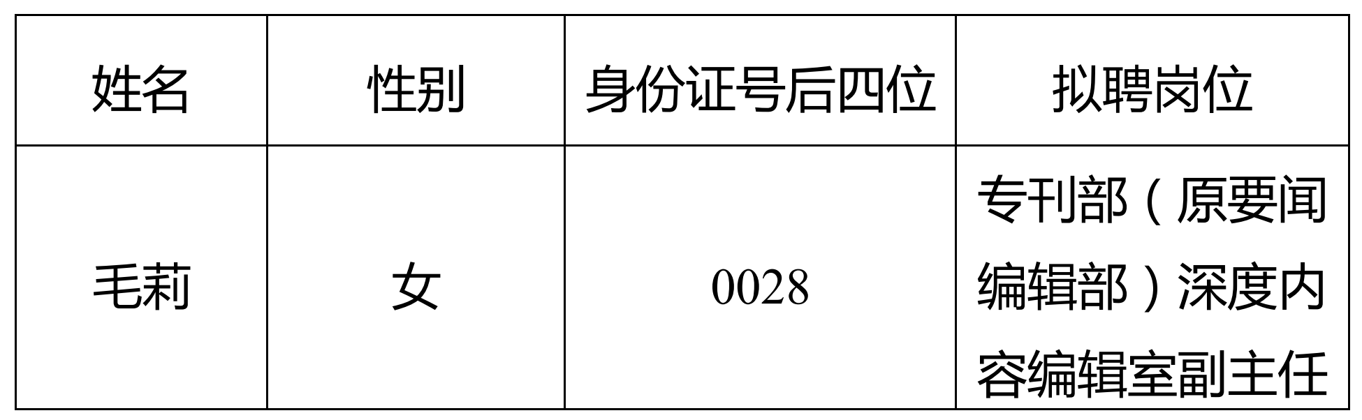 根據公開招聘相關規定,科技日報社組織開展了專刊部(原要聞編輯部)深度內容編輯室副主任(事業編制)公開招聘工作。經過筆試、面試、考察、體檢等程序,研究確定了崗位擬聘人選,現進行公示。