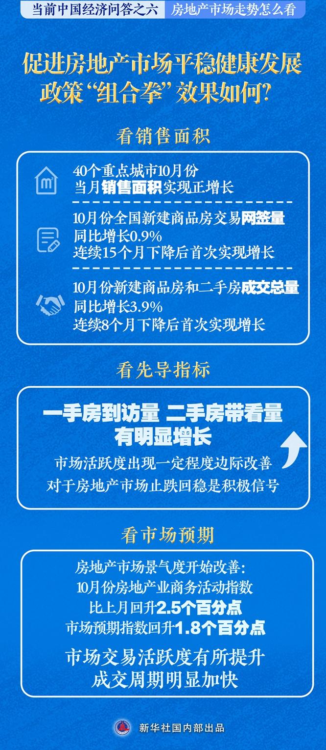 “總的來看,一攬子促進房地產市場止跌回穩的措施顯效,10月份房地產市場出現積極變化。隨著各項政策效能進一步釋放,推動房地產市場止跌回穩的動能將增強。”