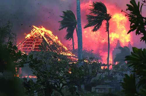 一場強勁的颶風掃過這片島嶼。8月8日凌晨,最初的起火點在距夏威夷毛伊島拉海納鎮56公里庫拉鎮的一處灌木叢。早上6點半,拉海納的灌木叢也曾起火,但得到控制。不過,庫拉的野火卻在強颶風“多拉”影響下迅速失控,并在下午3點半蔓延至拉海納。由于火災前發生大面積斷電和通信中斷,很多居民直到看見火焰或聽到異響時才開始逃離。夏威夷州據稱全球最大的戶外警報系統也在整個過程中完全靜默。