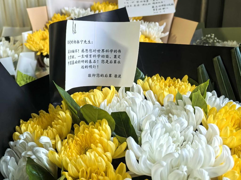 一位不愿透露姓名的吊唁者告訴我們,她曾猶豫是否要到清華大學高等研究院(以下簡稱“清華高研院”)獻花——一個普通人,好像沒有資格送別楊振寧這樣一位科學巨匠。“但是我還是來了,正因為是普通人,才更應該來。我們或許不懂高深的物理理論,卻無時無刻不在享受科學進步帶來的福祉。”