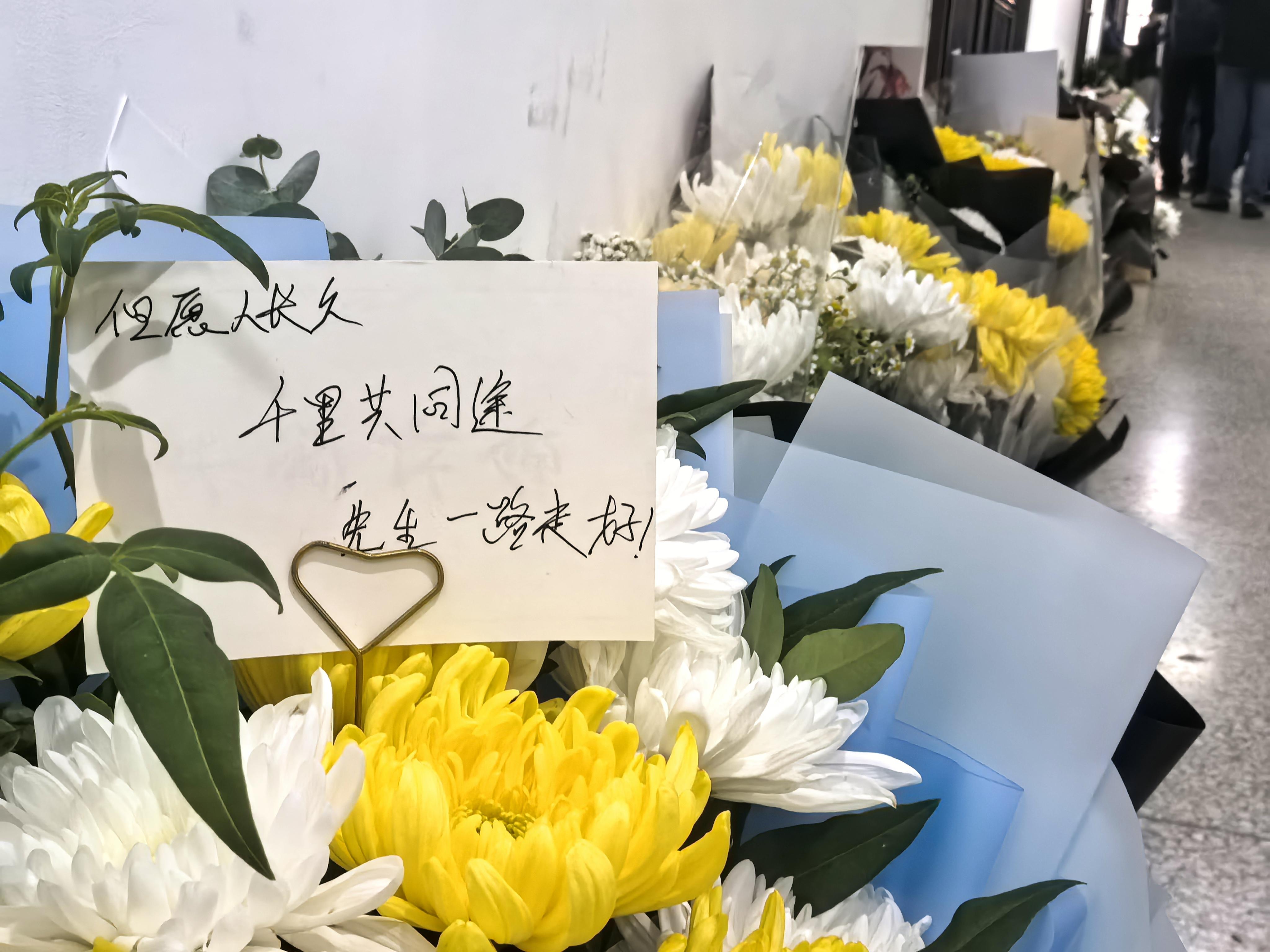 黃譽程又買了兩束花。一束代朋友送,一束為自己送。他在卡片上寫道:“感謝您在這個世界留下的一切,您的智慧一直在照耀和引領著我。愿您一路走好,精神永存!”