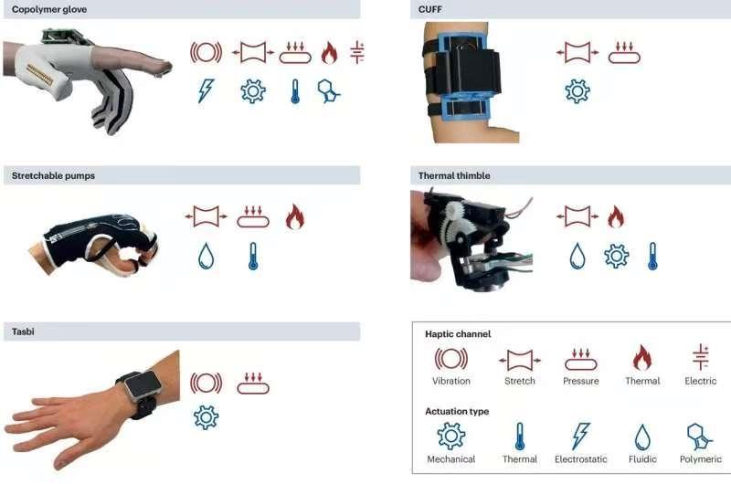 美國萊斯大學機械工程學教授瑪西婭·奧瑪利在近期刊登于《自然綜述:生物工程》雜志的論文中表示,傳統(tǒng)可穿戴觸覺設備大多依賴于振動來模擬觸摸感覺。然而,隨著傳感和驅動技術不斷取得進步,可穿戴設備正向多觸感領域進發(fā),為用戶提供更豐富的體驗,從而彌合人機數(shù)字交互之間的鴻溝。多觸感反饋意味著設備能同時向用戶提供多種類型的觸覺刺激,比如壓力、皮膚拉伸等。